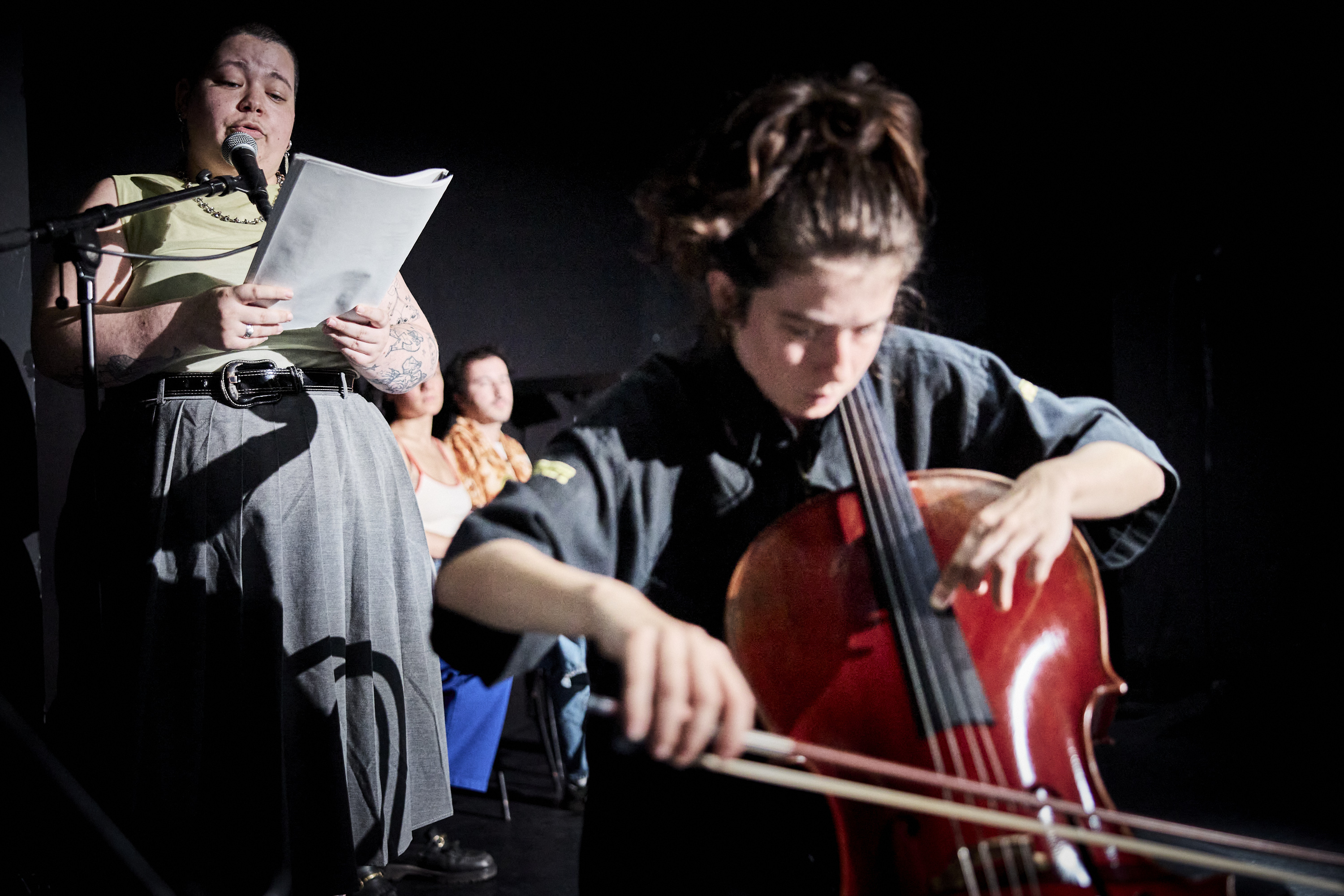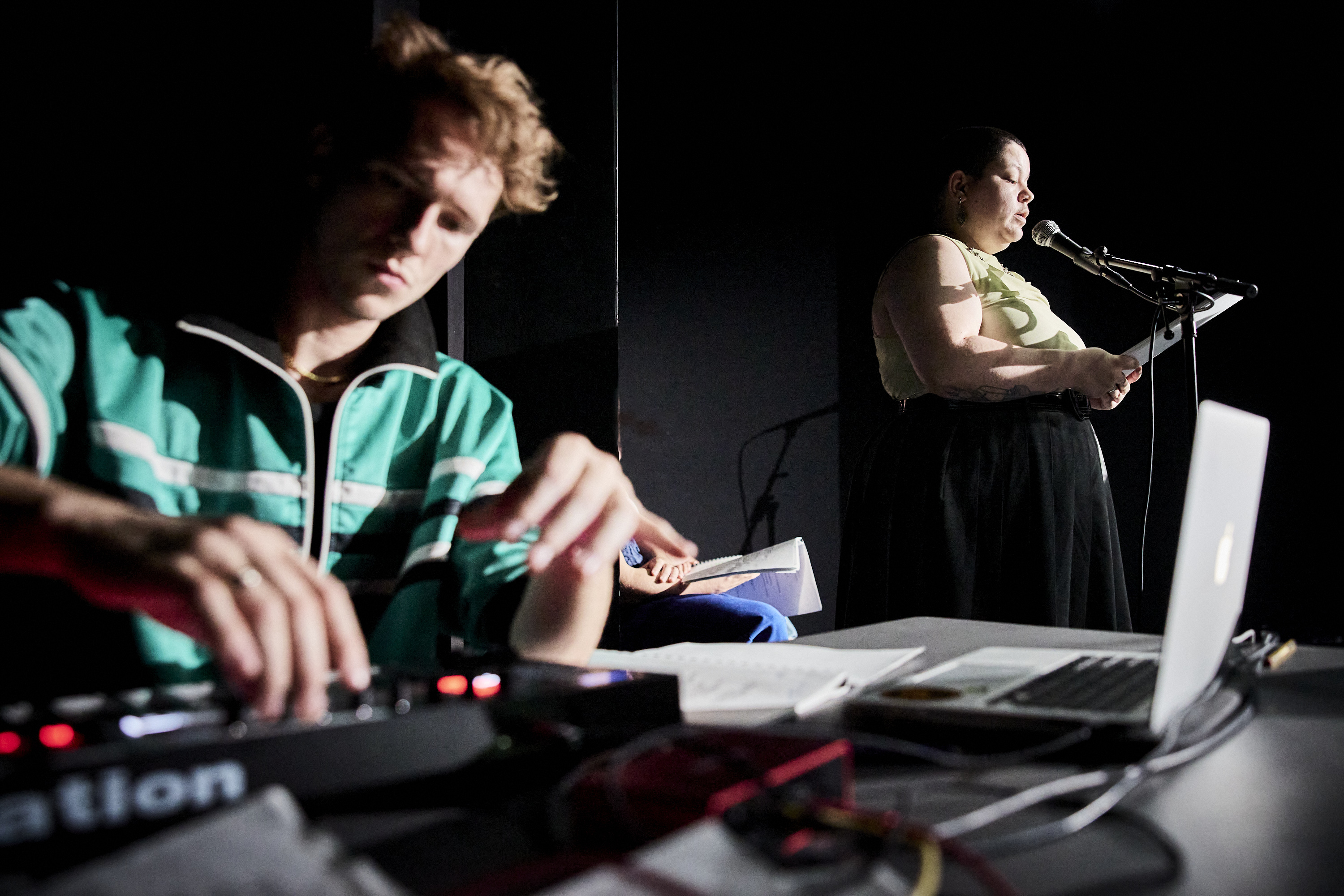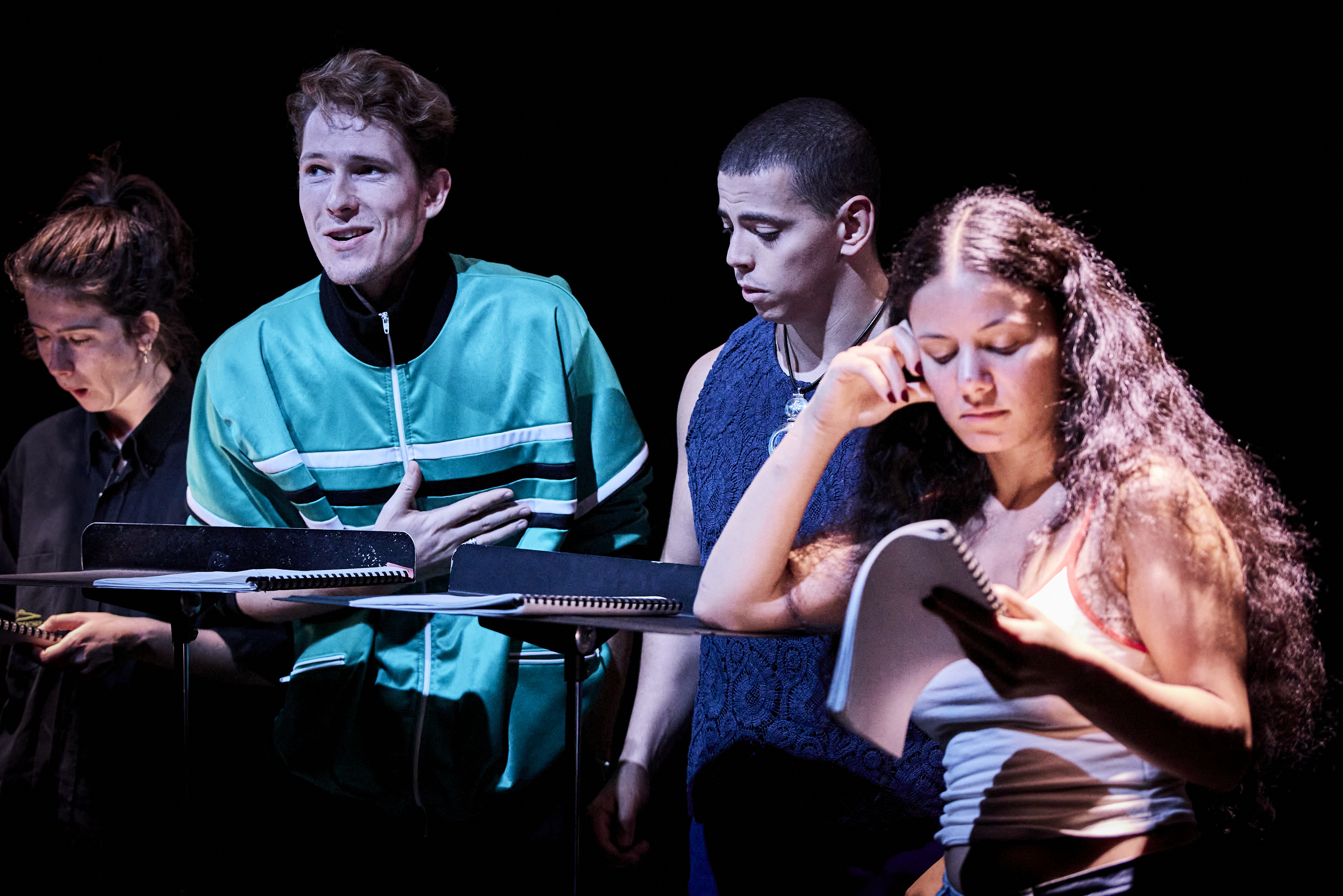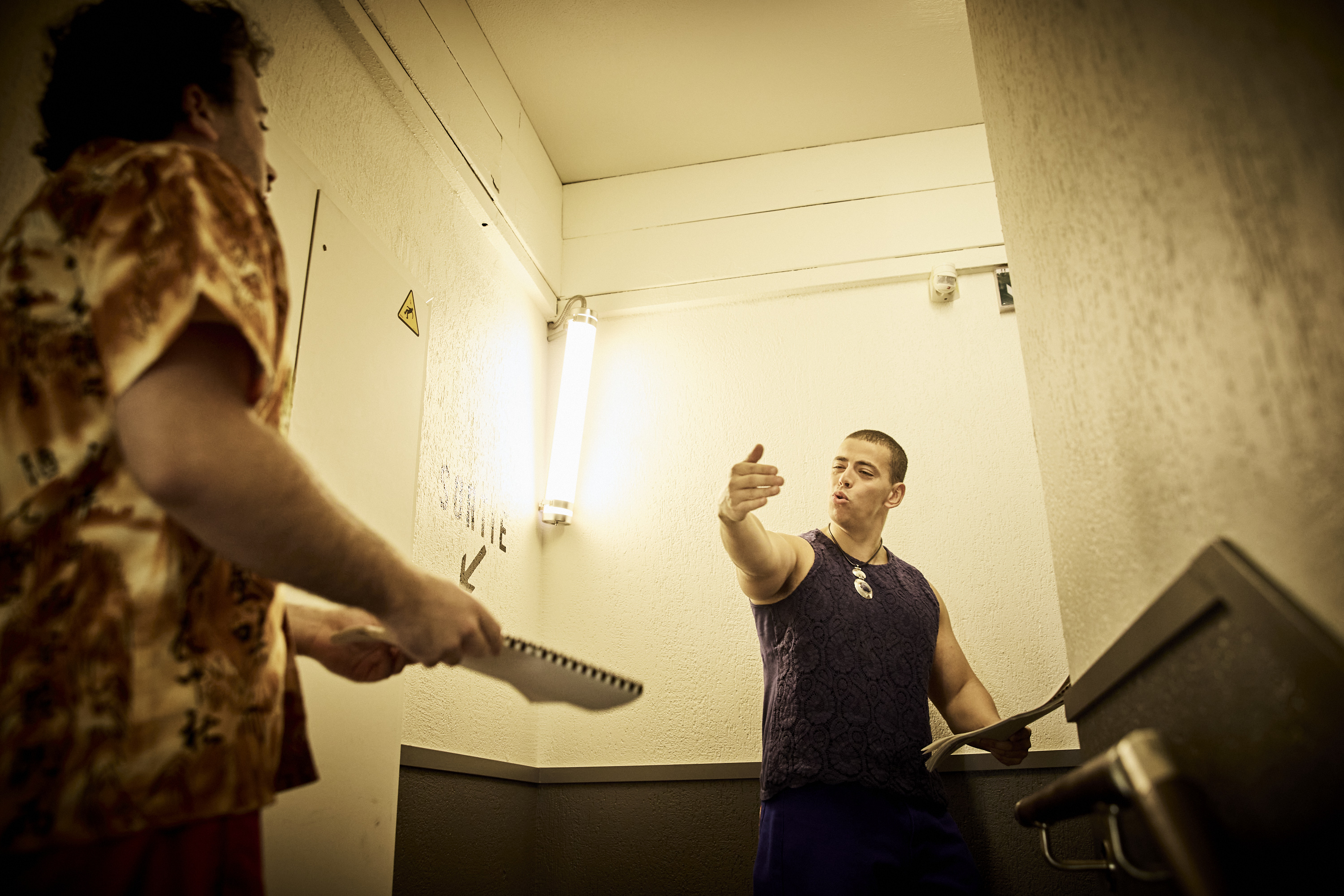 "Bagarre", c’est la lutte pour le pouvoir, qu’elle passe par les poings, les mots ou l’enceinte. C’est les pieds qui tapent, les nuques qui battent la mesure, les bouches qui crachent, les yeux noircis par le maquillage ou les embrouilles, les arcades qui pètent, le verre qui se brise, l’alcool qui se renverse, les tympans qui s’abîment, la poussière qui se soulève, les boules Quiès dans les cadavres d’Heineken. Bagarre est née d’une envie d’écrire pour et sur l’adolescence, dans une « langue adolescente » dont s’emparent Lucien, Oumaïma, Itziar, Tomy et Joan, chacun·e à leur manière.