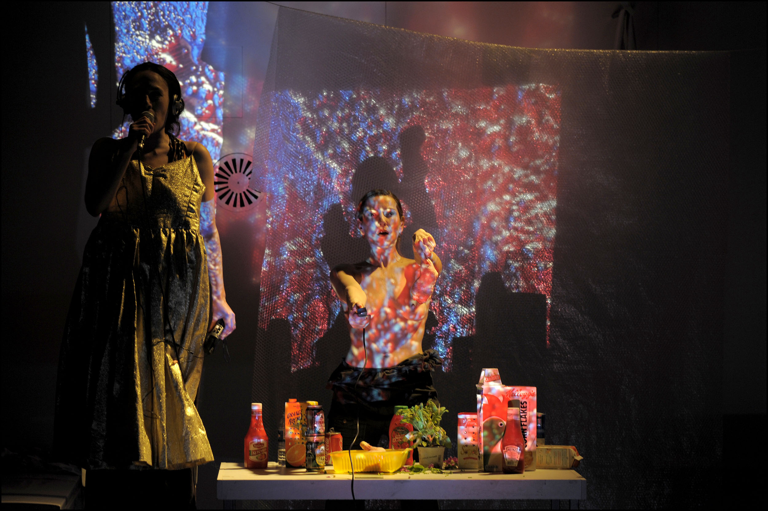 […] deux comédiennes totalement ébouriffantes dont la prestation tient autant de la performance dadaïste, du happening cathartique que de la parodie burlesque et de la subversion poético-trash.