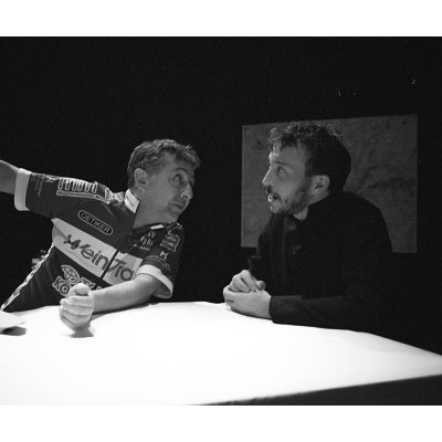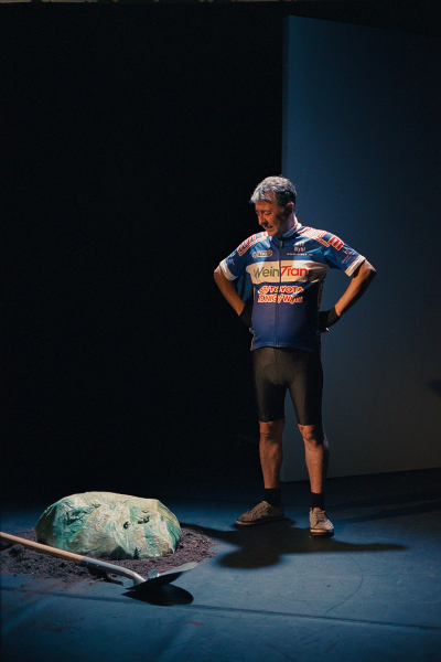 La rencontre entre Pierre Maillet et l’univers de Guiraudie semble évidente tant les deux hommes partagent de points communs. L’acteur incarne Jacques, au chômage, qui aime surtout faire du vélo et passer du temps dans le petit village de Gogueluz, tandis que Maurin Ollès interprète tous les autres personnages. Entre polar (deux meurtres se glissent au cœur de l’intrigue), fable érotique et comédie, ils livrent une pièce poétique et crue, décalée et incarnée, qui fait, à son tour, la part belle au cinéma.