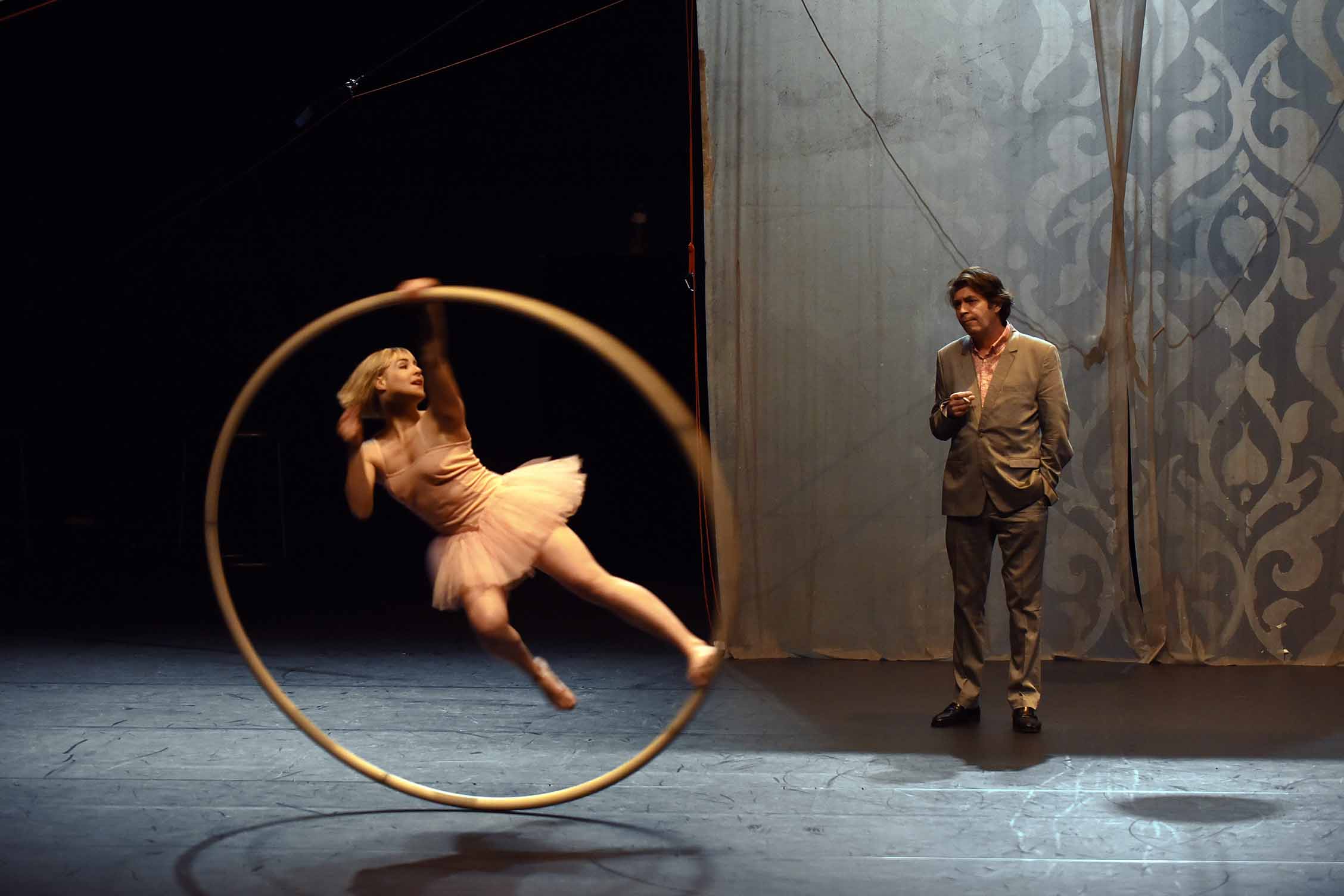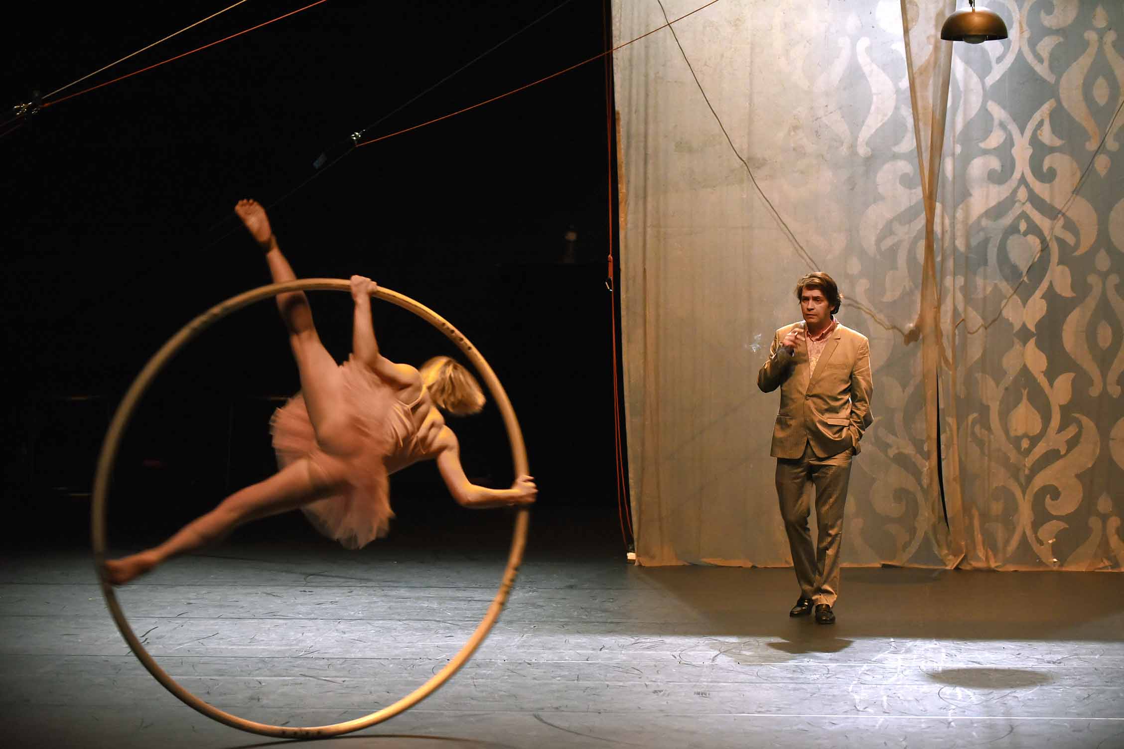 À partir d’une composition de Philippe Hersant sur le récit de Kafka Premier chagrin, Élise Vigier et Frédérique Loliée, associées à Leslie Kaplan pour la dramaturgie et à Gaétan Levêque pour le cirque, écrivent un spectacle mêlant musique, chant, jeux de cirque et théâtre. Dix chanteurs et deux instrumentistes, quatre jeunes circassiens issus de l’école du Centre National des Arts du Cirque, et deux comédiens racontent l’histoire d’un trapéziste ne vivant que pour son art, mangeant et dormant sur son trapèze, tout d’un coup saisi par le doute, sur le sens de son travail et de sa vie. Ce récit utilise l’art du cirque comme métaphore de la vie humaine, et montre ce qui est là sans arrêt, tragique et comique, invisible et omniprésent, comment on peut jongler avec ses mains et avec sa vie, monter toujours plus haut pour grandir et risquer de s’effondrer, se battre, rencontrer des obstacles réels ou imaginaires, et sans cesse rêver comme on pense, pour exister, aimer et désirer, se trouver, et, dit Kafka, « trouver une issue ».