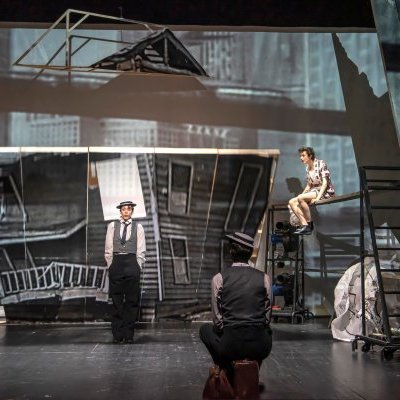 Entrer et sortir d’un écran de cinéma, prendre sur la tête une maison démontable, toujours lutter avec les objets, les éléments, la dureté du réel, perdre souvent, mais gagner un brin d’amour et un bouquet de rêves : tout est toujours possible avec Buster Keaton, le comique qui ne rit jamais, le réalisateur acteur téméraire et poète du cinéma muet. Dans la foulée de M comme Méliès (Molière du Jeune Public 2019) le tandem Marcial Di Fonzo Bo et Élise Vigier enchante l’artisanat du théâtre, ses trucages et autres métamorphoses, pour réinventer la magie et la fièvre de l’atelier du pionnier Keaton, l’enchanteur tendre au regard triste.