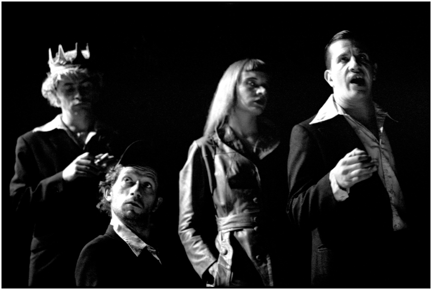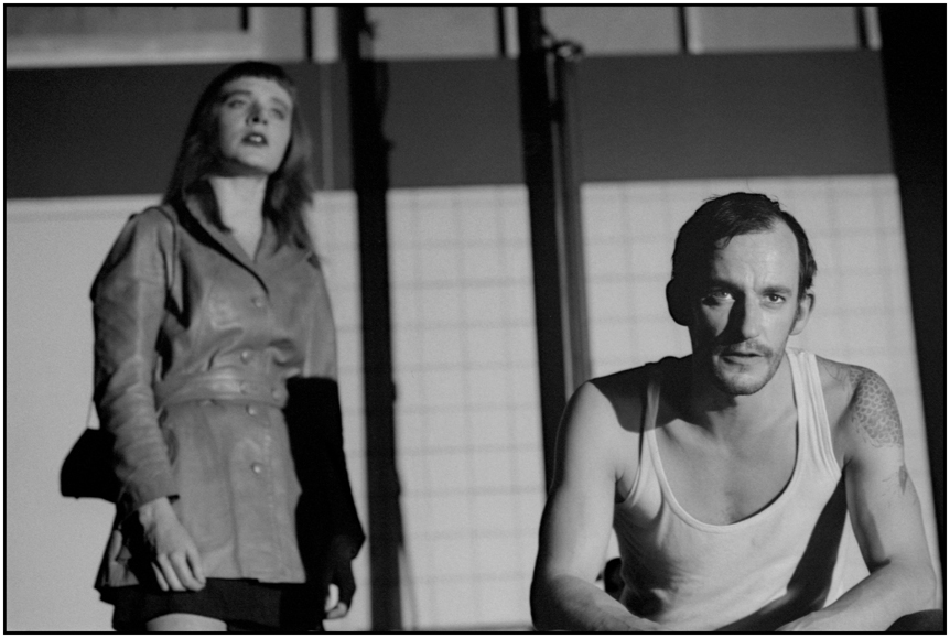 La fille de celui-ci, prostituée, qui lie son destin à celui du juif et accomplit avec lui un parcours tragique vers la lucidité. Son mari et maquereau, enfin, qui une fois déchu de sa place de bourreau domestique, embrasse la fonction de victime expiatoire de la ville. La forme de la pièce emprunte au collage et à l’opéra, et Fassbinder y déploie une langue choisie, décalée et souvent référencée. Si les chansons qui ponctuent la pièce ramènent si souvent au passé, c’est que, comme le nazi Müller, elles avancent masquées, c’est qu’elles maquillent sous la musique la langue des pères, qui agit encore sur les esprits. Les personnages sont des figures qui recueillent des paroles, des réceptacles.