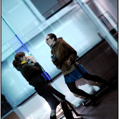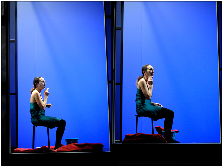 (…) Les deux interprètes – étonnantes - investissent de tout leur corps ces mots courts, les font valser en l’air ou se chevaucher, les dansent en rythme. L’intelligent et astucieux dispositif scénique –un cube translucide installé sur le plateau- suggère différents espaces et, grâce à un système de projections, permet toutes les fantasmagories. Il est formidablement habité (...)