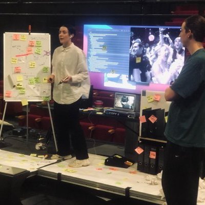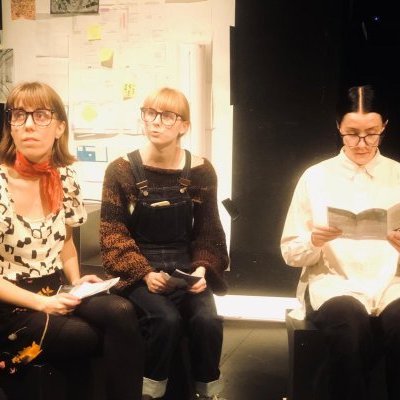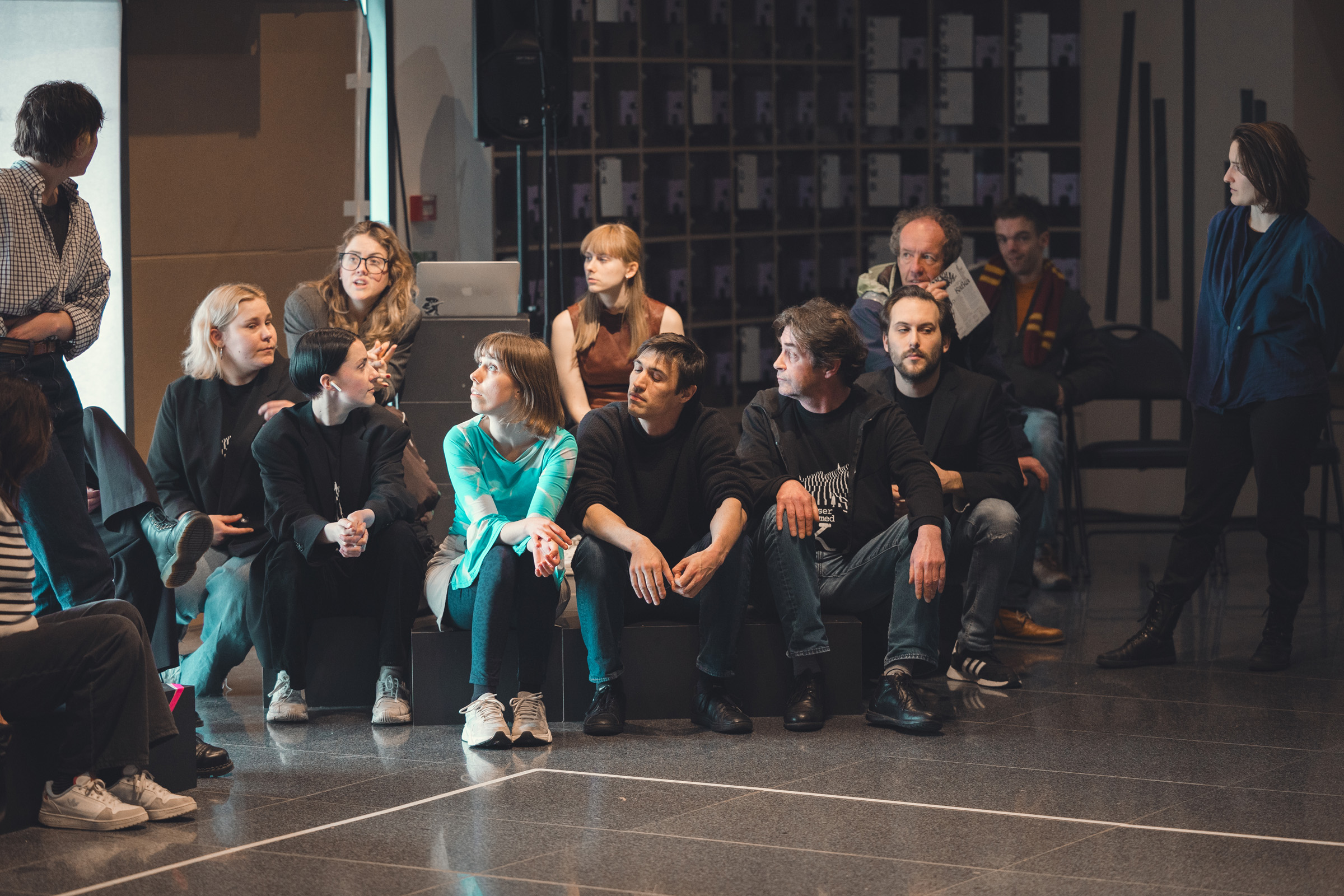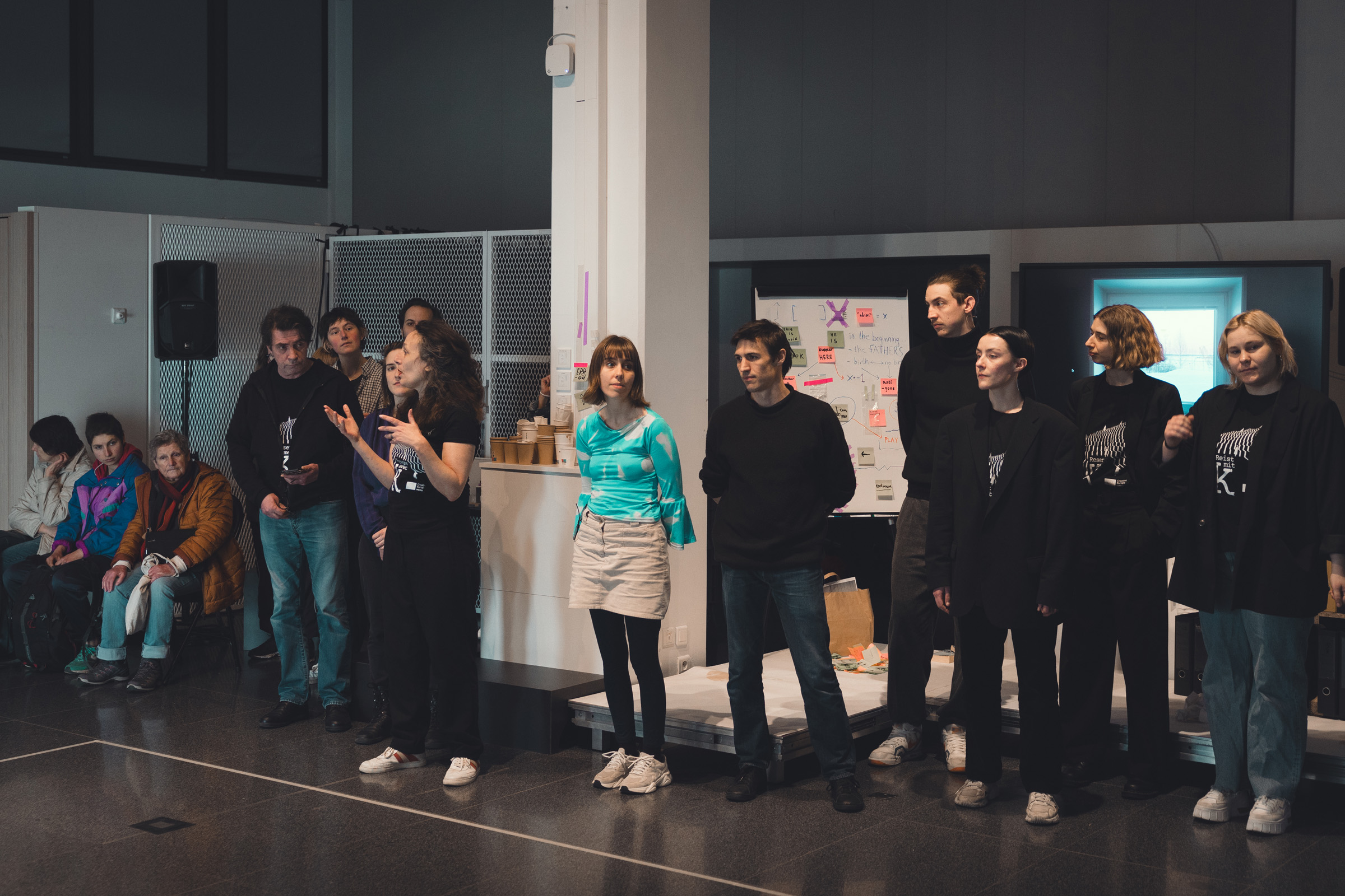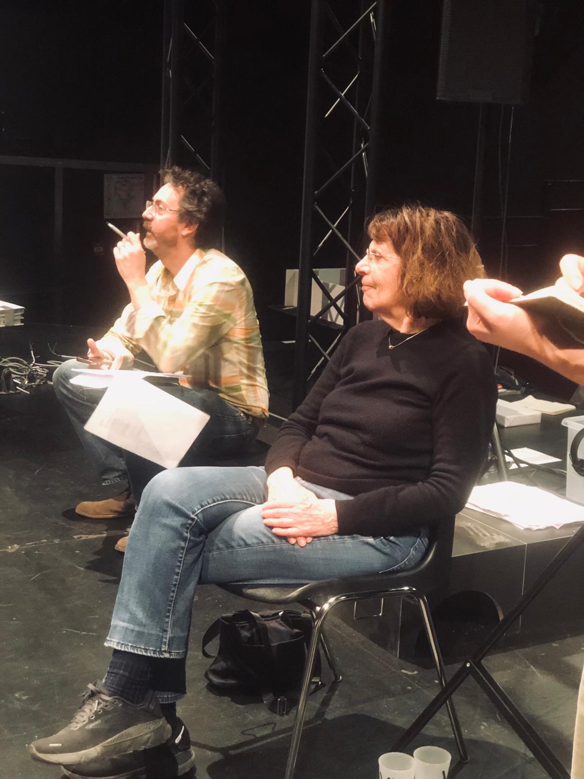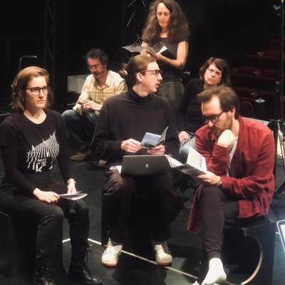 Des présentations publiques ont rendu compte du travail mené dans le cadre des semaines de recherche. Ces présentations comprenaient les esquisses scéniques des étudiant.e.s ainsi que l’évolution/développement de la pièce en cours d’écriture "Voyages avec K."
