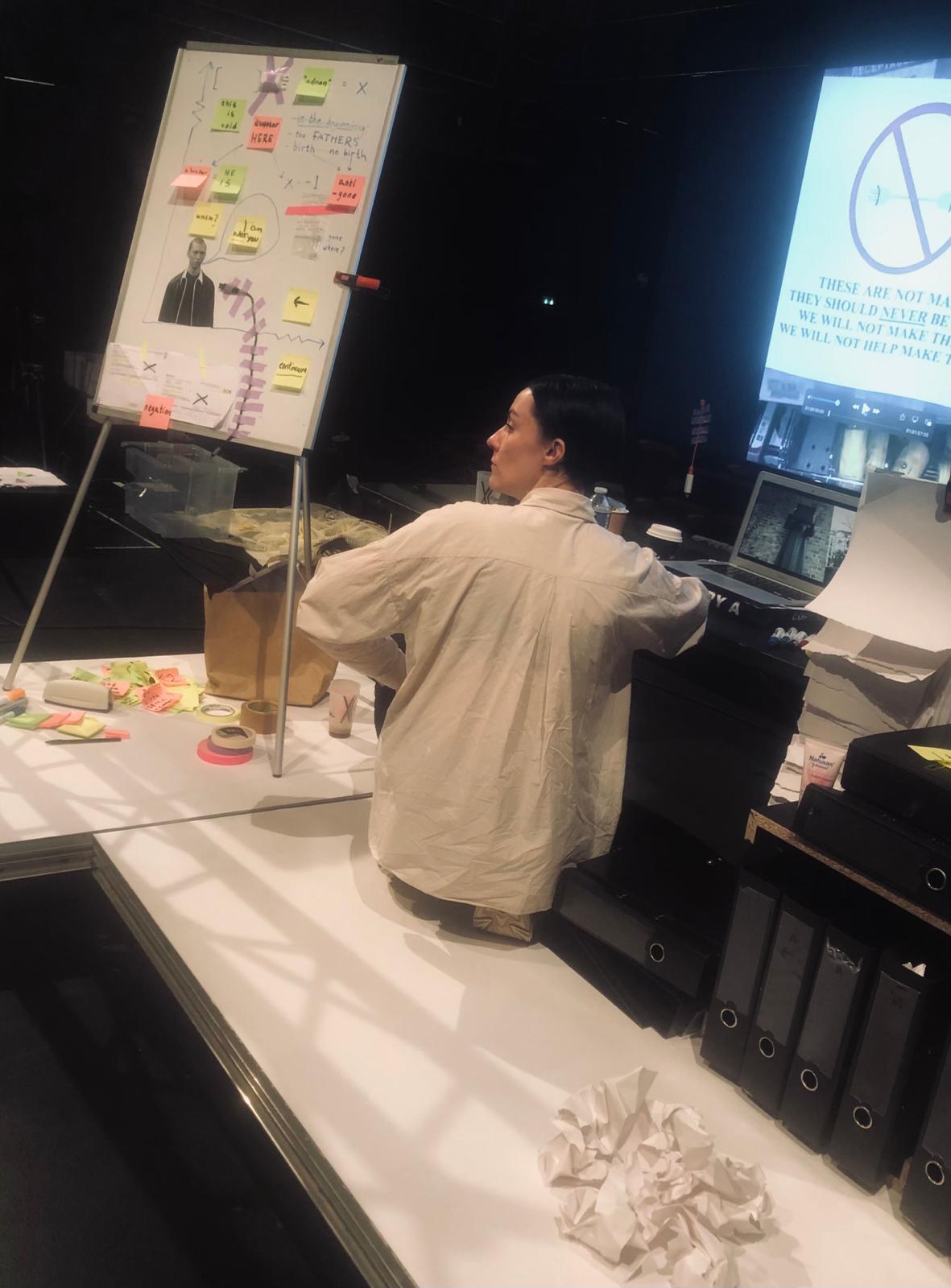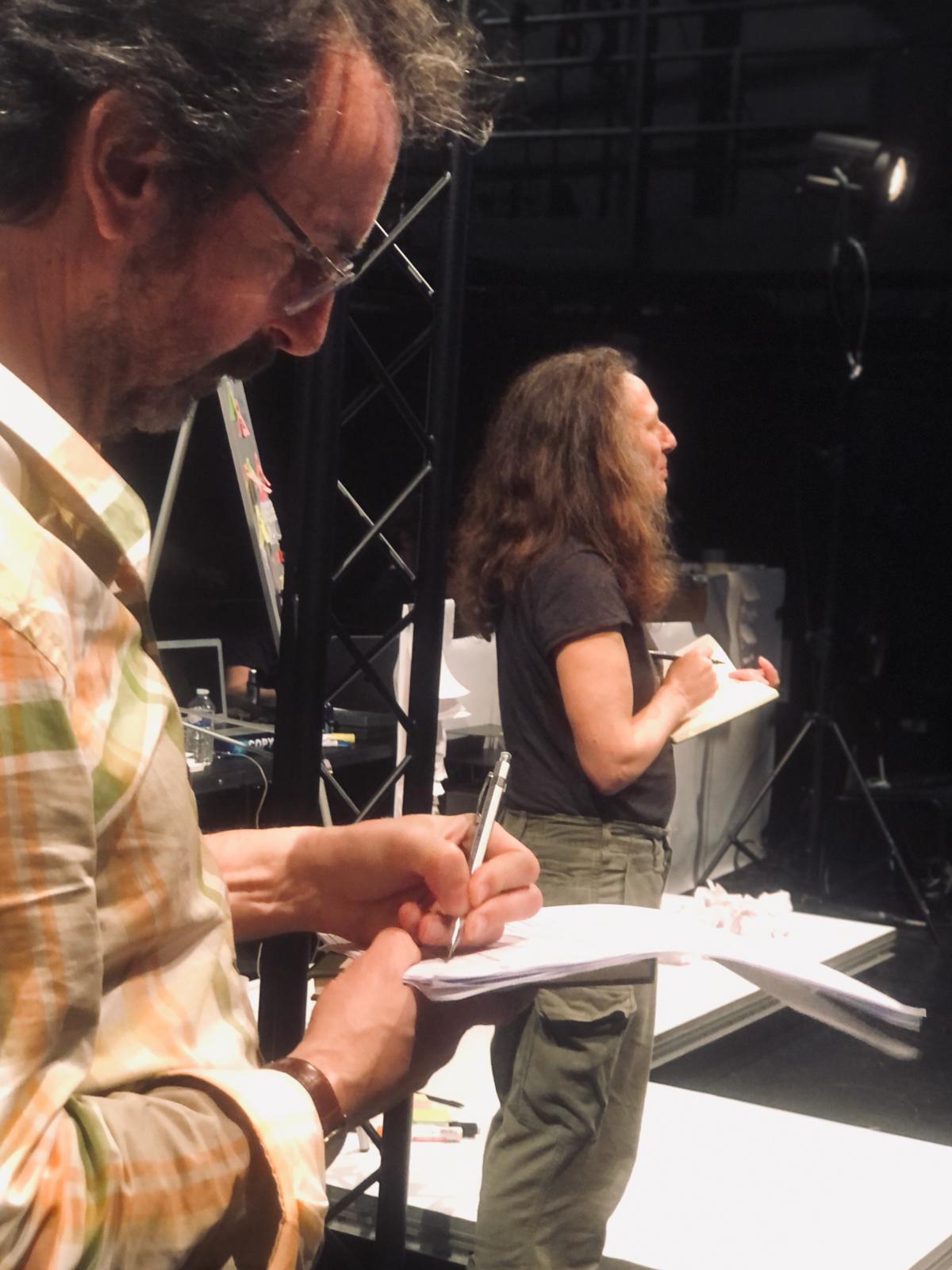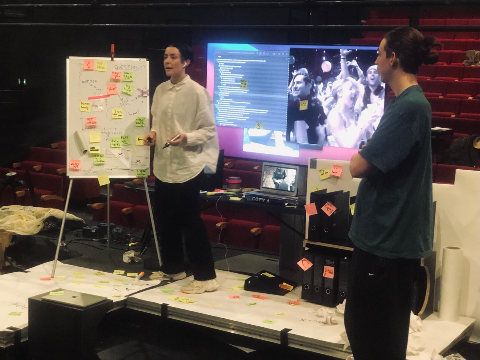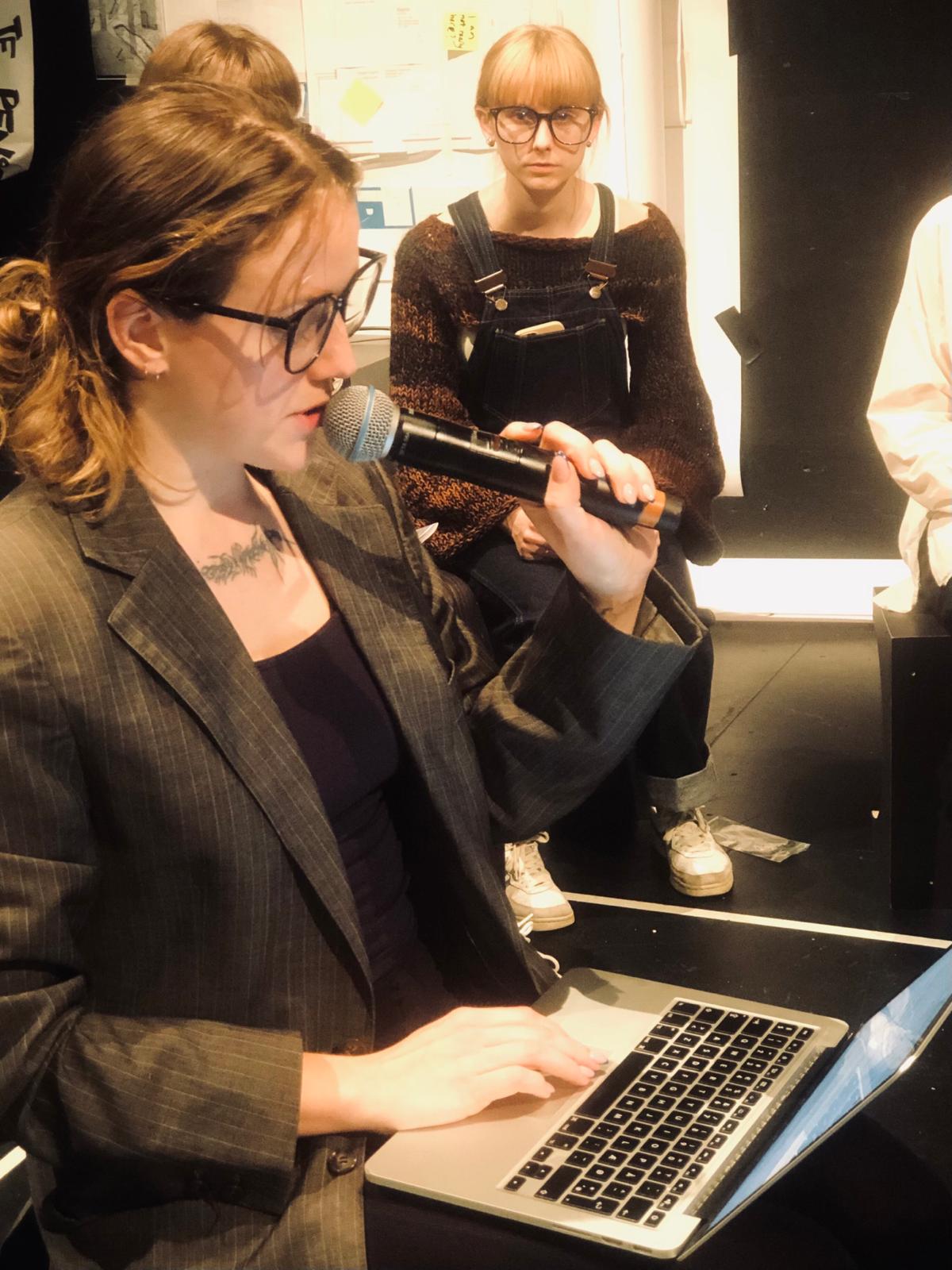 Des présentations publiques ont rendu compte du travail mené dans le cadre des semaines de recherche. Ces présentations comprenaient les esquisses scéniques des étudiant.e.s ainsi que l’évolution/développement de la pièce en cours d’écriture "Voyages avec K."