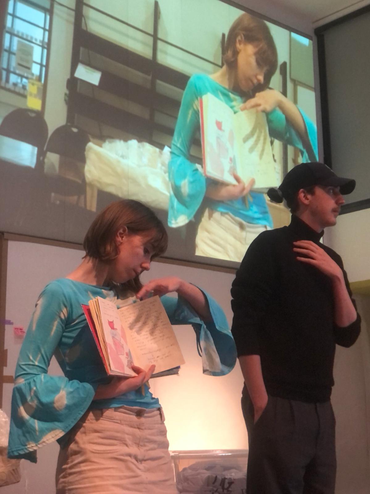 Après plusieurs semaines de travail collectif, des œuvres issues d’une recherche commune ont été produites et associées pour la création de TRAVELS WITH K, une performance kaléidoscopique.