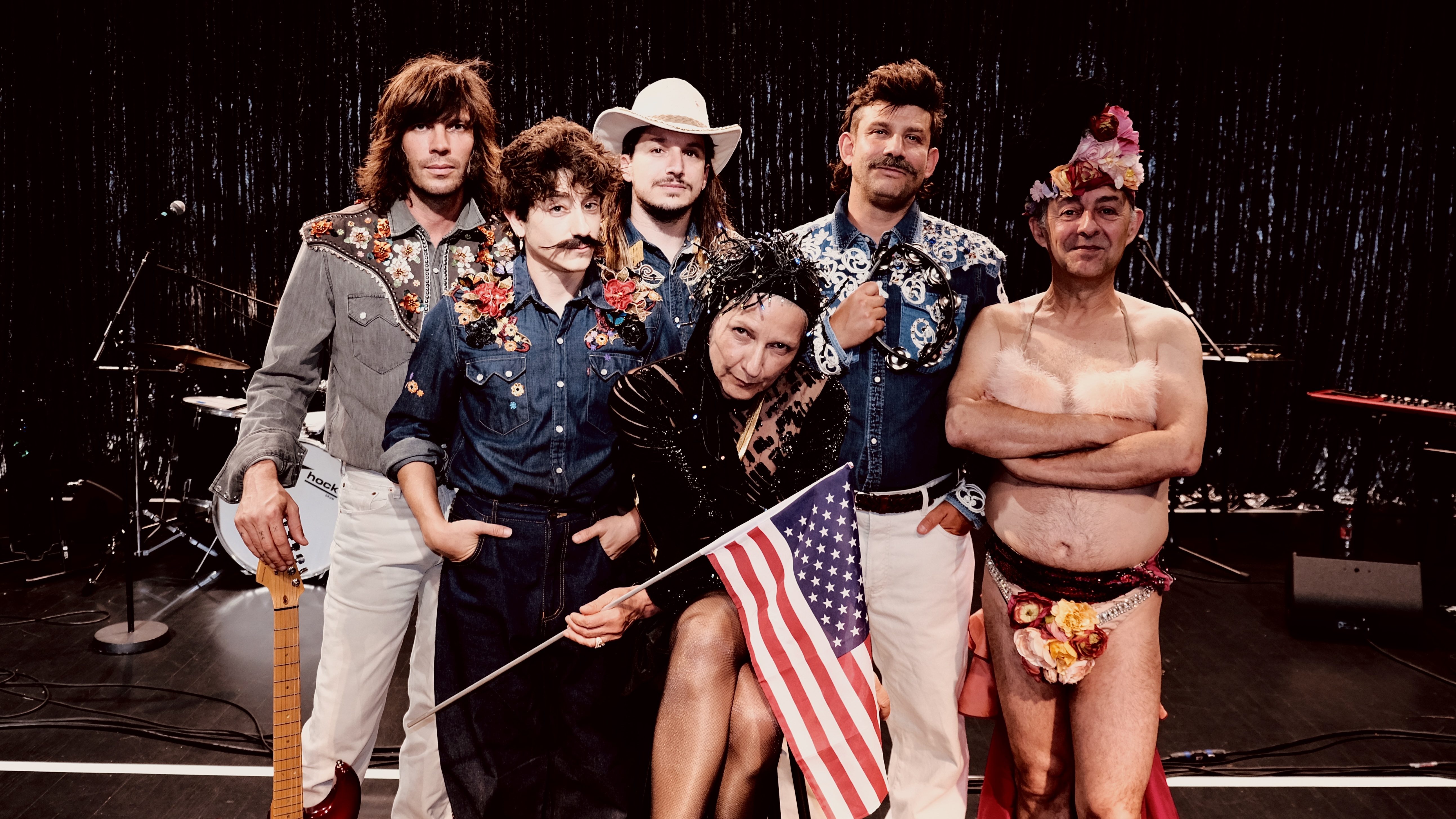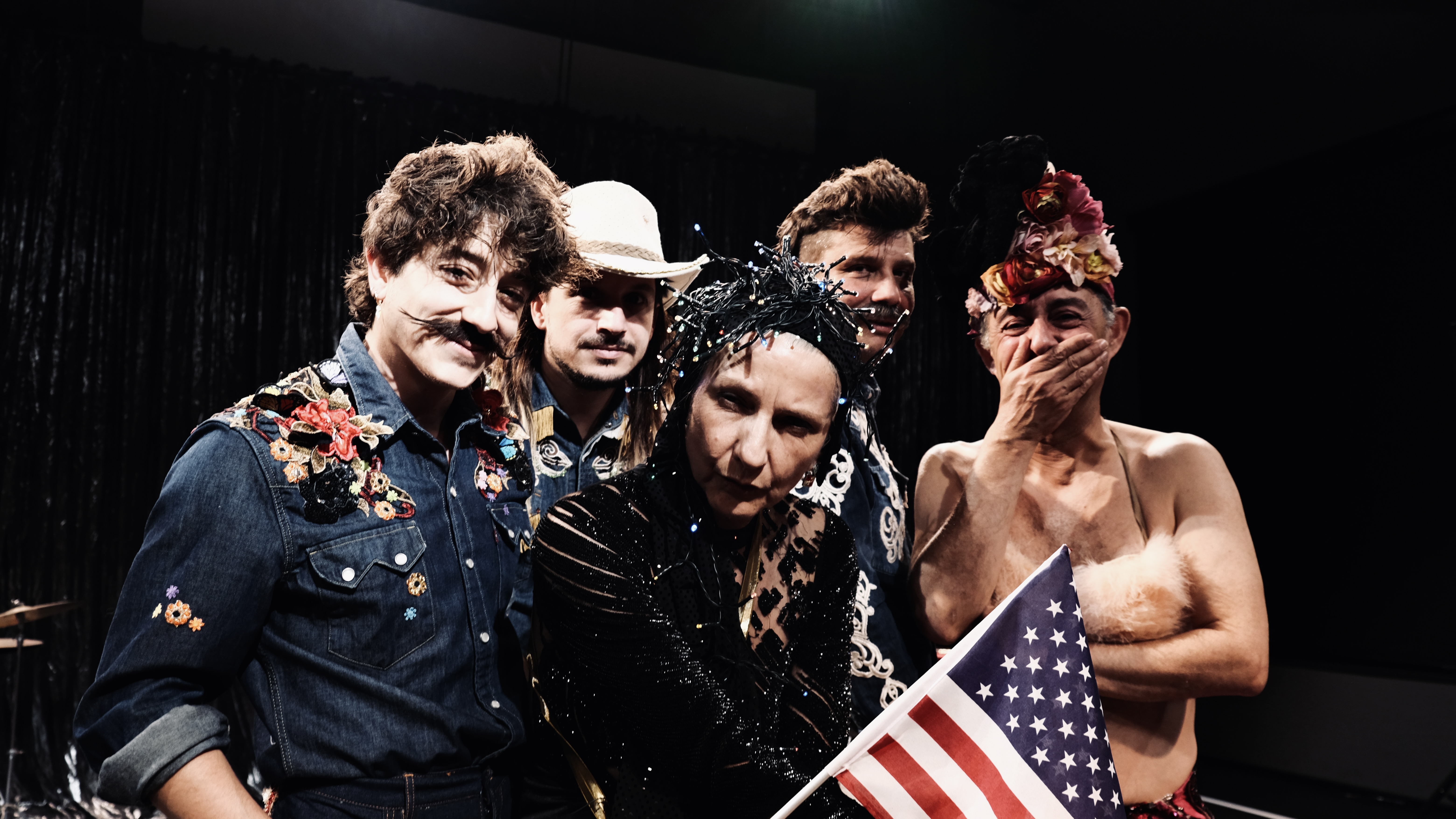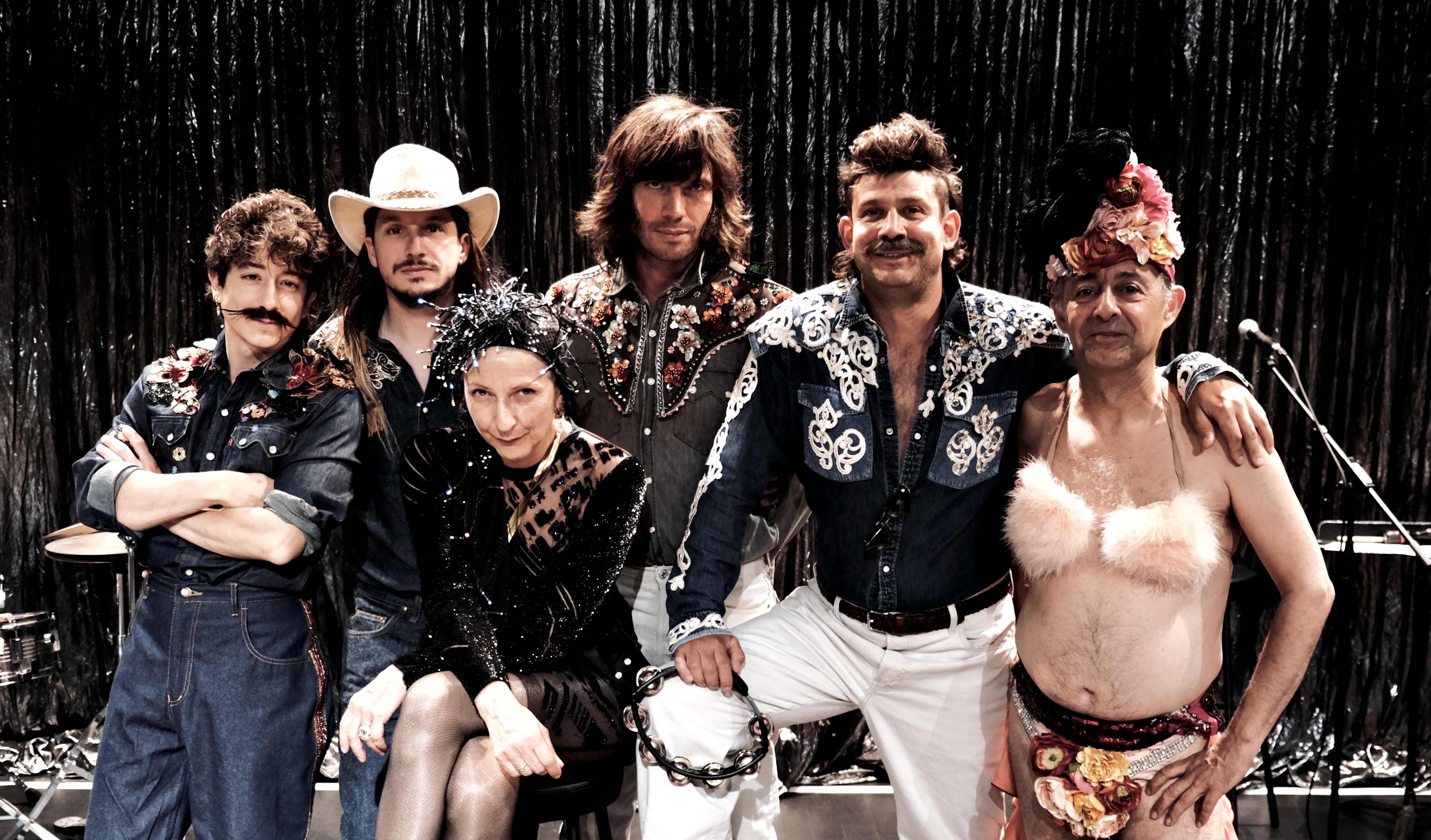 Le public, installé autour de guéridons, fait connaissance avec ces figures étranges et magnifiques, qui convoquent les fantômes de leur passé et se métamorphosent à vue. Du répertoire des Années folles jusqu’aux airs country, piano, guitare électrique et batterie accompagnent ce spectacle de cabaret théâtral, fascinant et follement généreux.