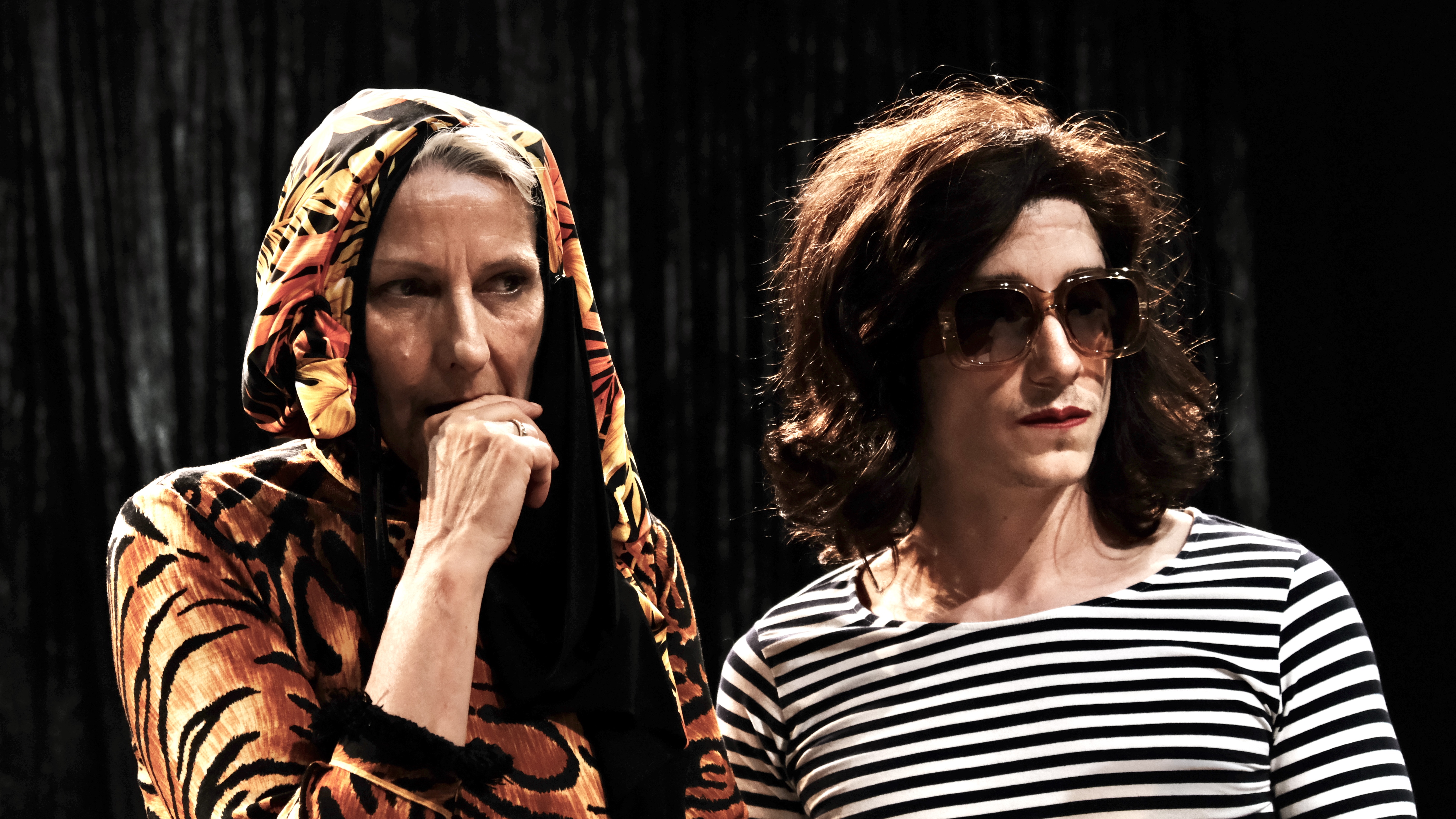 Là, le transformisme suggéré par l’autrice se déploiera à l’échelle d’un lieu : le Reno Sweeney donc, et particulièrement le si bien nommé « Paradise Room », l’arrière-salle où les spectacles se jouaient. Inscrire la pièce dans ce lieu signifie pour moi que ce n’est plus la chambre ou la maison que la mère et la fille transforment en scène de représentation mais plutôt l’inverse, c’est la scène qui devient leur maison ou leur chambre : intime, folle et « théâtrale ». À leur image. Ce qu’on sait moins par chez nous c’est que le film « Grey Gardens » des frères Maysles a offert en 1975 la célébrité à ces deux personnalités qui font de leur « chute » une fierté, voire une provocation bien sentie à la face du monde « normal ».
